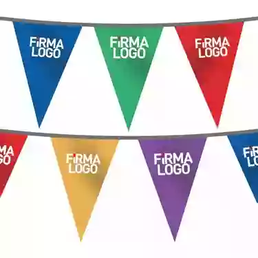 İpe dizili süsleme bayrakları Raşel kumaşa standart veya özel ölçülerde üçgen veya dikdörtgen şeklinde basılıp birleştirilerek imal edilir.